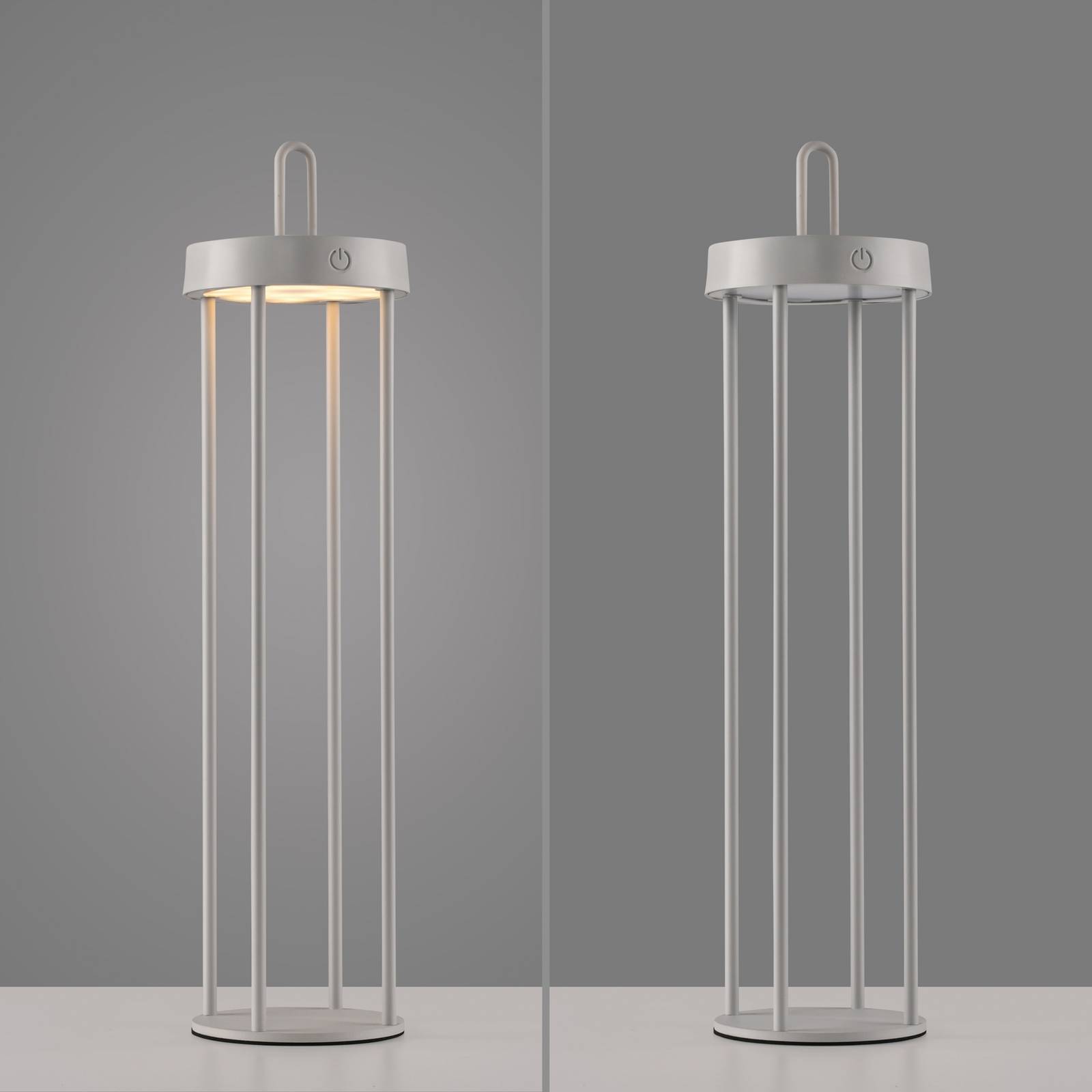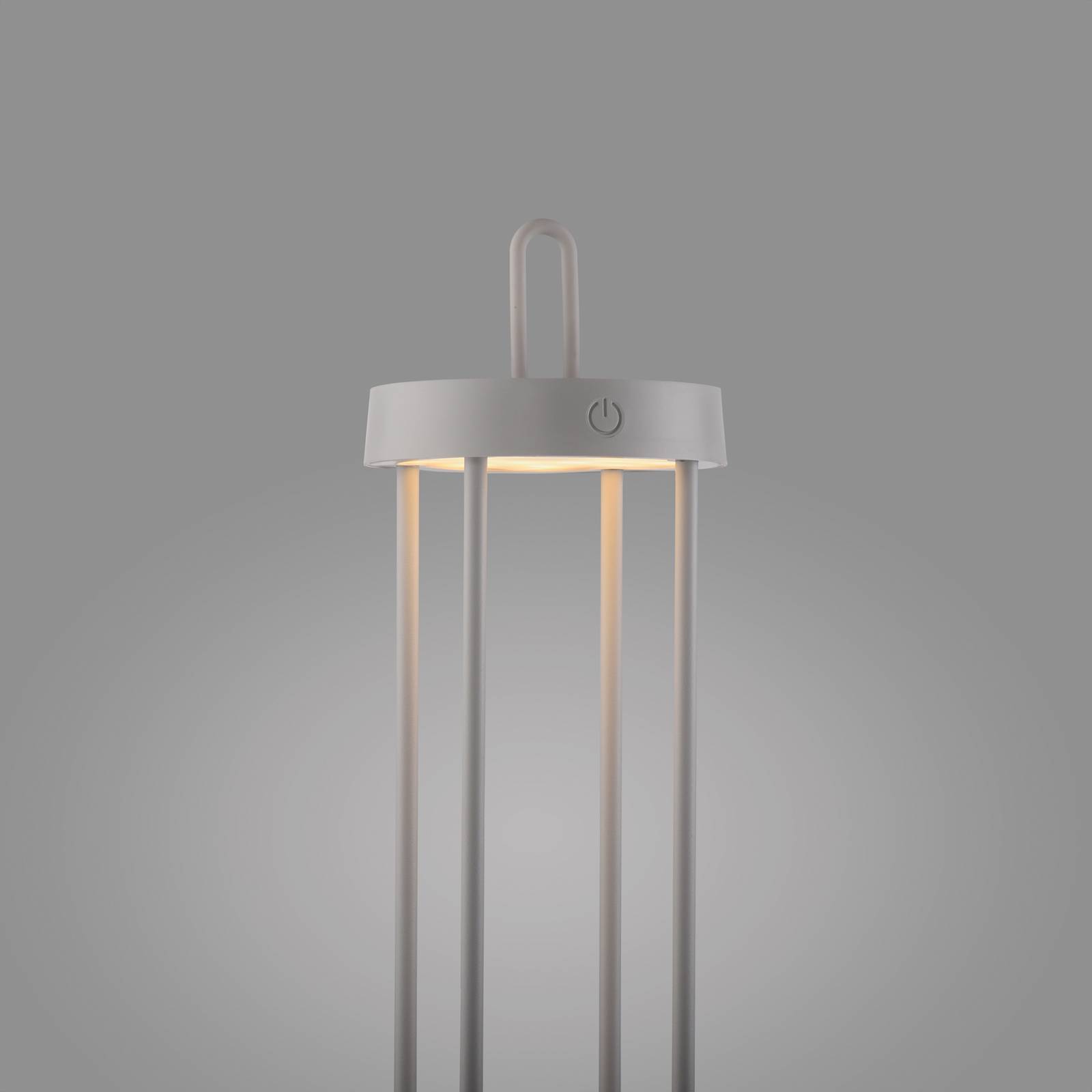 Lampada mobile a lanterna - Anselm LED da tavolo ricaricabile per interni ed esterni La forma della lampada da tavolo LED Anselm è una moderna interpretazione della lanterna. La maniglia sulla parte superiore invita a riposizionare costantemente la lampada da tavolo, mentre una batteria ricaricabile è integrata per il funzionamento lontano da fonti di alimentazione esterne. Il modulo LED è integrato nella parte inferiore della testa rotonda ed emette luce delicatamente verso il basso. In salotto, in veranda o in giardino, Anselm offre una piacevole illuminazione d'atmosfera. Si accende e si dimmerà tramite il pulsante posto sul lato della testa - Grado di protezione: IP44 - Tempo di ricarica: 4 ore - Tempo di combustione ad alta luminosità: 7 ore