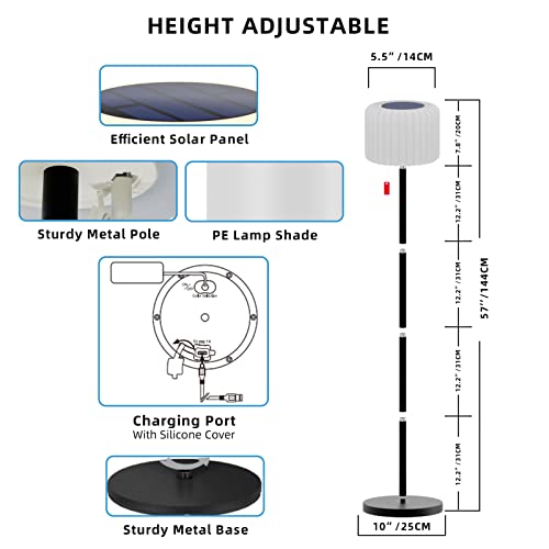 【Materiale durevole】: la lampada da terra include paralume in plastica PE e palo / base in metallo. Il paralume è realizzato in plastica PE che è durevole, resistente all'usura e alla caduta. L'impermeabilità è IP44. Il palo e la base della lampada in metallo sono robusti per sostenere la lampada in piedi. La lampada può essere utilizzata nei giorni di pioggia/neve.