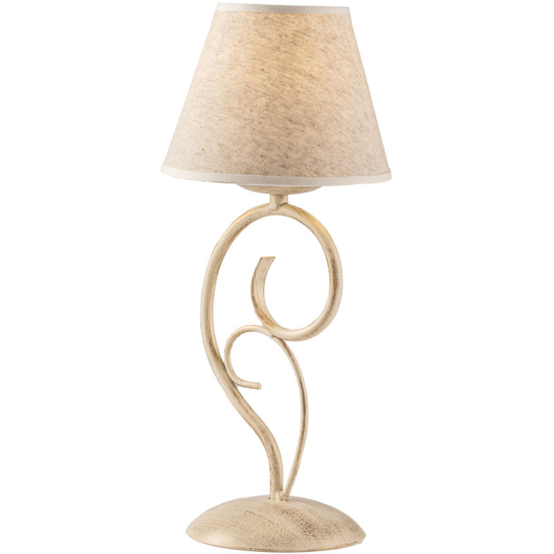 Collezione Vienna RAFFINATO FERRO BATTUTO PER UN' ELEGANZA SENZA TEMPO Lumetto 1 luce in ferro laccato con pittura termoindurente color avorio con decorazione effetto antichizzato oro.. Struttura con un braccio arcuato, arricchito da arabeschi in ferro, che termina con un portalampade rivestito da paralume in pvc effetto juta naturale. Una lampada semplice, con poche linee eppure molto raffinata. Disponibile anche nella versione marrone e oro.