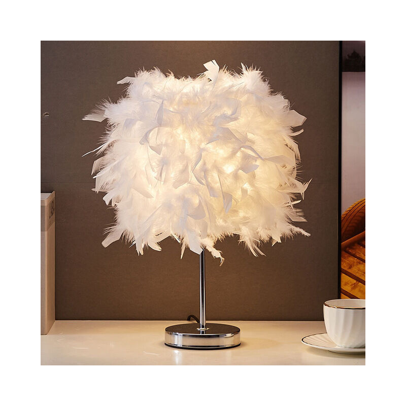 Product Information Name:Feathers Table Lamp Color:White Pink Materials:Hardware+ High Quality Feathers Crafts:Chrome plating, polishing, braiding Switch Type:USB Switch Light Source Light Source:E27(Include warm light bulb) Occasions:Living Room / High-end Restaurant Space:8-15m Features: Antique, vintage design makes your home full of style. Soft light, does not glare. It is not only table lamp, but also it is great decorations for your home. Application: Living room, dining room, bedroom, study room, exhibition hall, hotel room, coffee shop, etc.