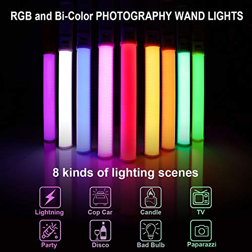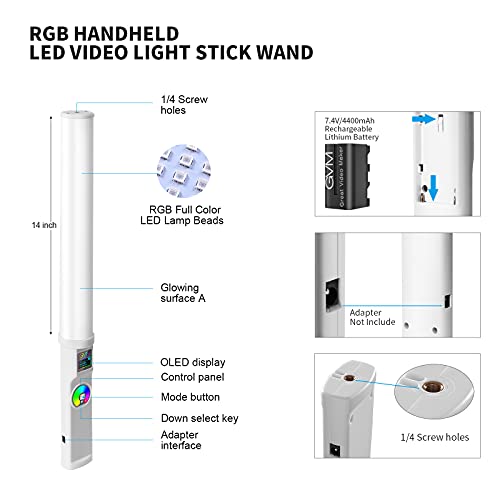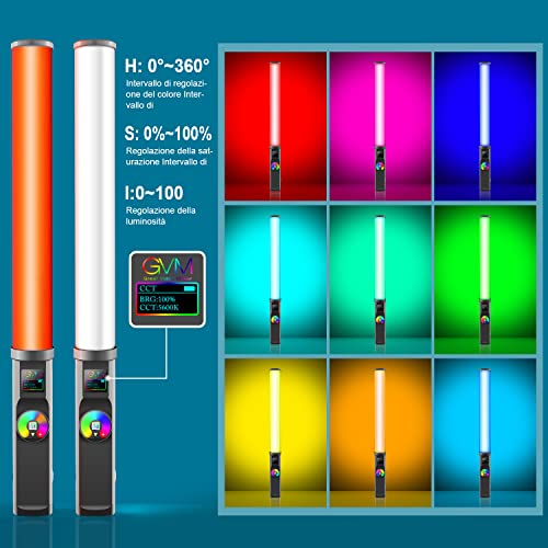 GVM RGB Tube Light, LED Palmare Luce Video, Effetto Luce 3200K-5600K, Supporto Controllo APP, Batteria Incorporata di Grande Capacità da 4400 mAh - LED Video Light RGB T20