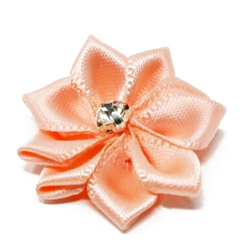 Light Peach 25 mm Nastro di raso fiori con strass e brillantini, centro, bricolage, fiori, Tessuto, Orange, 25-30mm