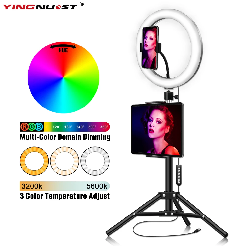 10'' RGB Ring Light With Phone Tripod Stand Kit Camera Photography Video Recording Selfie LED light with Tablet Holder for iPad
