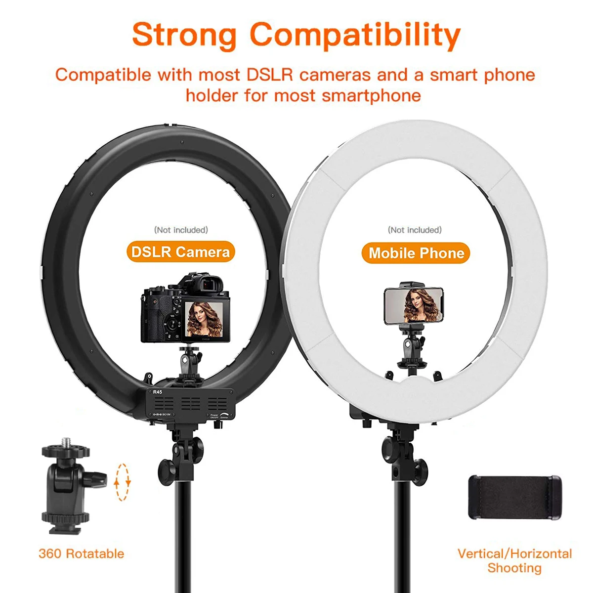 18 Inch LED SMD Ring Light For Photography Photo Video Studio Live Streaming Dimmable Selfie Light And Tripod Stand Phone Holder