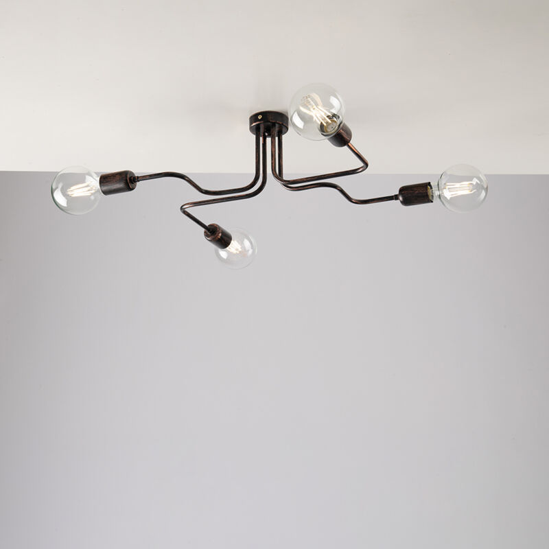 Collezione Loft STILE INDUSTRIAL PER CHI PREDILIGE FORME SEMPLICI MA DECISE Plafoniera 4 Luci in ferro laccato nero con decorazione rame in tipico stile Industrial. Una serie dal design minimal liberamente ispirata allo stile newyorkese che con i suoi elementi verticali e le luci a vista risulta la scelta ideale per illuminare anche ampi open space.