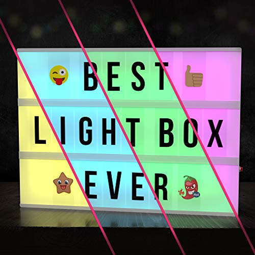 - Con la nostra scatola luminosa per il cinema che cambia colore con le lettere puoi decorare qualsiasi spazio con lo stile cinematografico che illumina il segno del messaggio per ogni occasione. La scatola del cinema che cambia colore ha una confezione eccezionale che non richiede una confezione regalo aggiuntiva