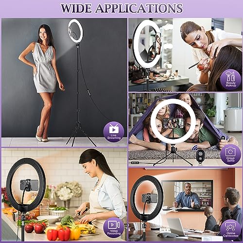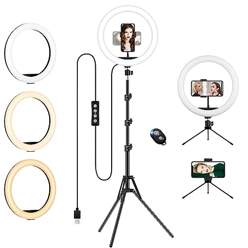 12,6" Ring Light Professionale, Luce per Selfie con 60" Grande Treppiede (più Luce Altezza totale 73,6"/ 187cm), 3 Modalità con 10 Luminosità, Lampada Tik Tok per Foto Video Fotografia Telefono