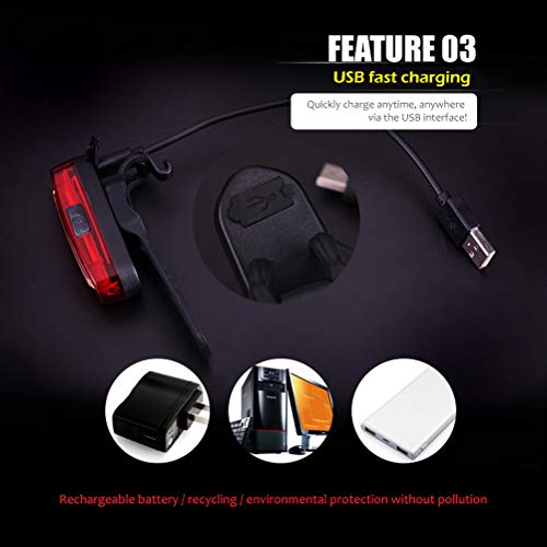 Bike Rear Tail Light, USB Rechargeable LED Safety Light for Bicycle, Ultra Bright Waterproof Cycling Taillight,Red/White 2 Light Modes Fits on Any Road or Mountain Bike