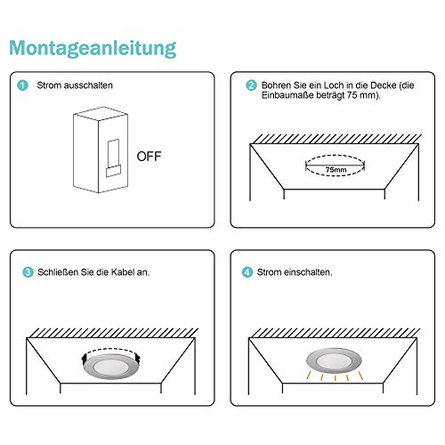 Design ultrasottile, confezione da 6 downlight LED ultrasottili da 6w, la cui profondità di installazione è di soli 26 mm, non preoccuparti della mancanza di spazio! La proprietà impermeabile è adatta a varie stanze come soggiorno, bagno, camera da letto, cucina, ecc.