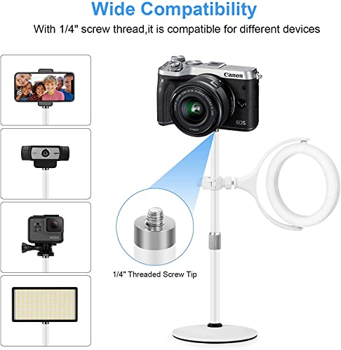 Base in lega pesante e stabilità eccellente: rispetto alle luci ad anello per treppiede sul mercato, la nostra nuova versione della luce ad anello migliora il supporto, che è realizzato in lega di alluminio e utilizza una base rotonda pesante per un'eccellente stabilità e durata. Con stabile supporto in metallo e base rotonda in metallo, l'illuminazione per videoconferenza è stabile ed elegante. Il supporto è estensibile e l'altezza della lampada per laptop può essere da 17,7 pollici a 23,6 pollici