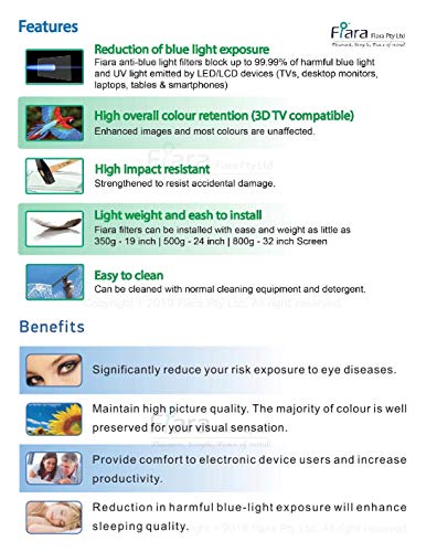 Blocca fino al 99,9% di luce blu dannosa emessa da dispositivi LCD/LED (TV, monitor desktop, PC, laptop). Protezione brevettata dal brevetto di innovazione AUSTRALIA, testata e verificata dall'autorità australiana di test indipendente, SGS Taiwan e conforme allo standard RoHS.