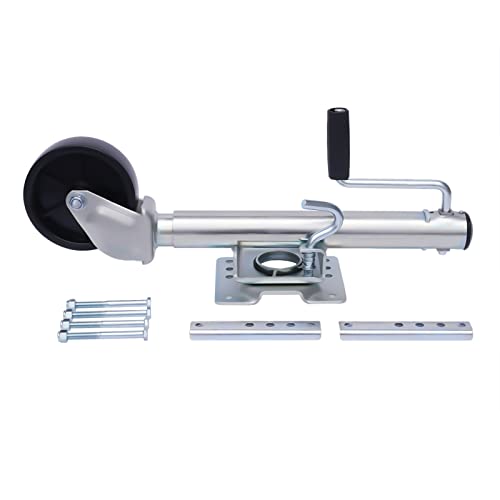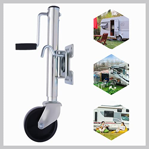 Materiale di alta qualità: questa ruota di supporto per rimorchio è realizzata in acciaio zincato di alta qualità, questa ruota di supporto è antiruggine e robusta, ha una capacità di carico massima di 1200 lb.