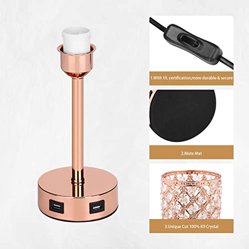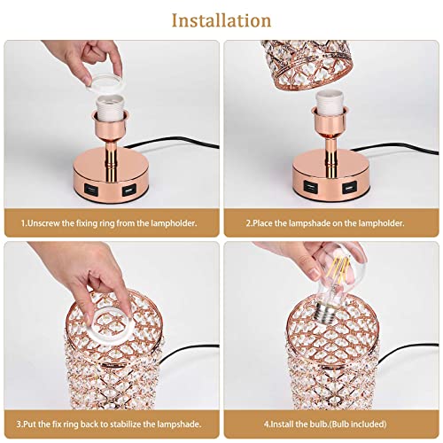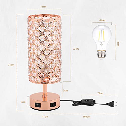 Lightess Lampada da Comodino in cristallo, E27, Touch Controllo Pieno Lampada da Tavolo con Porte di Ricarica USB, Dimmerabile Lampada da Tavolo in Cristallo per Camera Soggiorno (Lampadina Inclusa)
