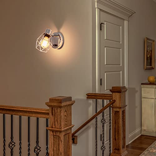 Lightess Lampada da Parete interni Vintage Applique da Parete in Legno Metallo Gabbia Design Industriale E27 Illuminazione Interni Lampada a Muroper Corridoio Portico Camera da Letto Soggiorno-Argento