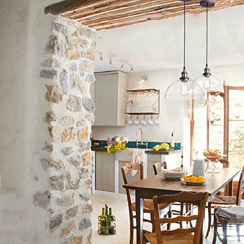 Lightess Lampada a Sospensione Stile Edison Vintage Industriale Lampadario da Soffitto Paralume in Vetro Attaco E27 (lampadina non inclusa)