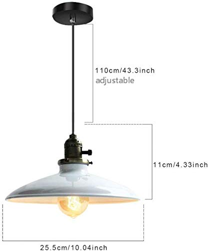 Lampadario vintage, dimensioni: diametro 25.5 cm,altezza 11cm, diametro base: 10 cm, lunghezza di filo regolabile: 110 cm, colore bianco.