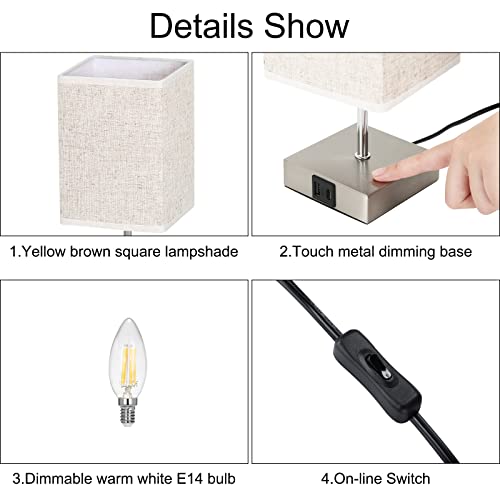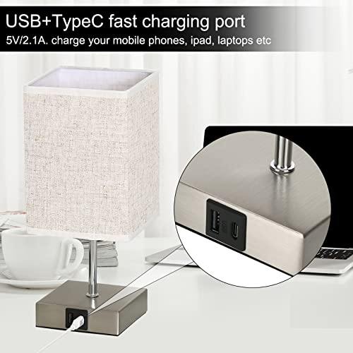 Lightess 2 Pz Lampada da Tavolo Touch Regorabile Lampada Comodino Dimmable con Paralume USB e Type C in Tessuto con Lampadine dimmerabili Lampada da Comodino, per Camera da Letto Soggiorno