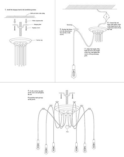 Lightess Lampadario Vintage per Soffitto, a Forma di Ragno con Bracci Pendenti, Massimo 60W per Ogni Lampadine Attacco E27×6