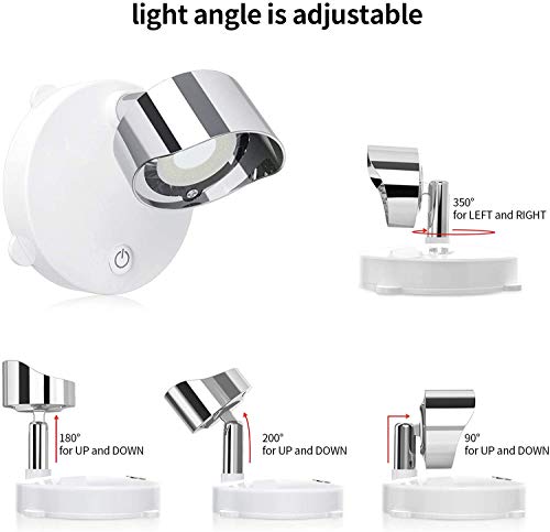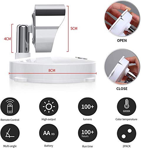 Lightess 2 Pezzi Adesivi Faretti a LED Luci Batteria Luci del Telecomando Applique 350° Rotante per Corridoio Camera da letto Cucina ecc. (Bianco Freddo)