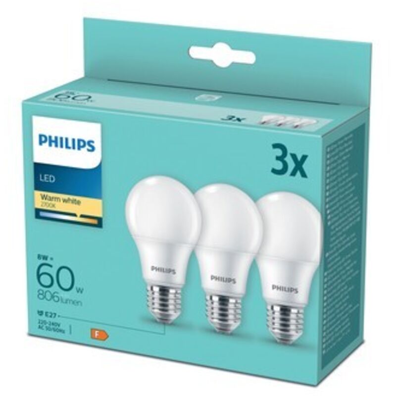 Lampada LEDClasse energetica F8 Watt230 Volt806 Base lumen E 27Colore luce bianco caldoAntiriflesso15.000 oreDurata mediaAltezza rete: 108 cm6 cm DiametroDettagli tecniciEAN/UPC/GTIN: 8718699775490Wattaggio massimo della lampada sostitutiva: 8WDurata media: 15000 orePotenza nominale: 8WTempo di accensione: 0, 5 sTipo di lampada: LEDTipo di vetro: Mat12 Codice logistico NC: 929002306203Durata della lampada (@ 2,7 ore/giorno): 15 anniCodice EOC: 871869977549000Peso netto dell'imballaggio: 165 gConsumo di energia (1000 ore): 8 kWhOmogeneità del colore (SDCM): 6Angolo del fascio medio: 180 °Flusso luminoso medio: 806 lmTitolo del prodotto: LED 60W A60 E27 WW FR ND 3PF/6 DISCSAP larghezza per pezzo: 14.900 cmSAP lunghezza per pezzo: 6.100 cmSAP altezza per pezzo: 11.500 cmEnergy Lamp current: 70 mAAC tensione in ingresso: 220-240 VAC -frequenza di ingresso: 50-60 HzTensione di ingresso: 220-240 VAltre specificheClasse di efficienza energetica (vecchia): A+Prestazioni Potenza della