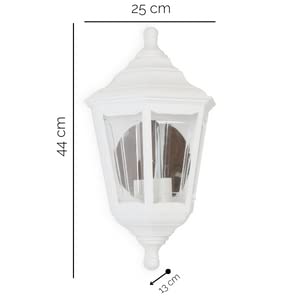 Fornisce un'illuminazione morbida e sicura, aggiungendo un tocco di stile classico al vostro spazio esterno. Materiale molto resistente, il suo grado di protezione è IP65. La nostra applique da esterno Clic Clac 6 è dotata di una sorgente luminosa interna che può essere una lampadina o la tecnologia LED"