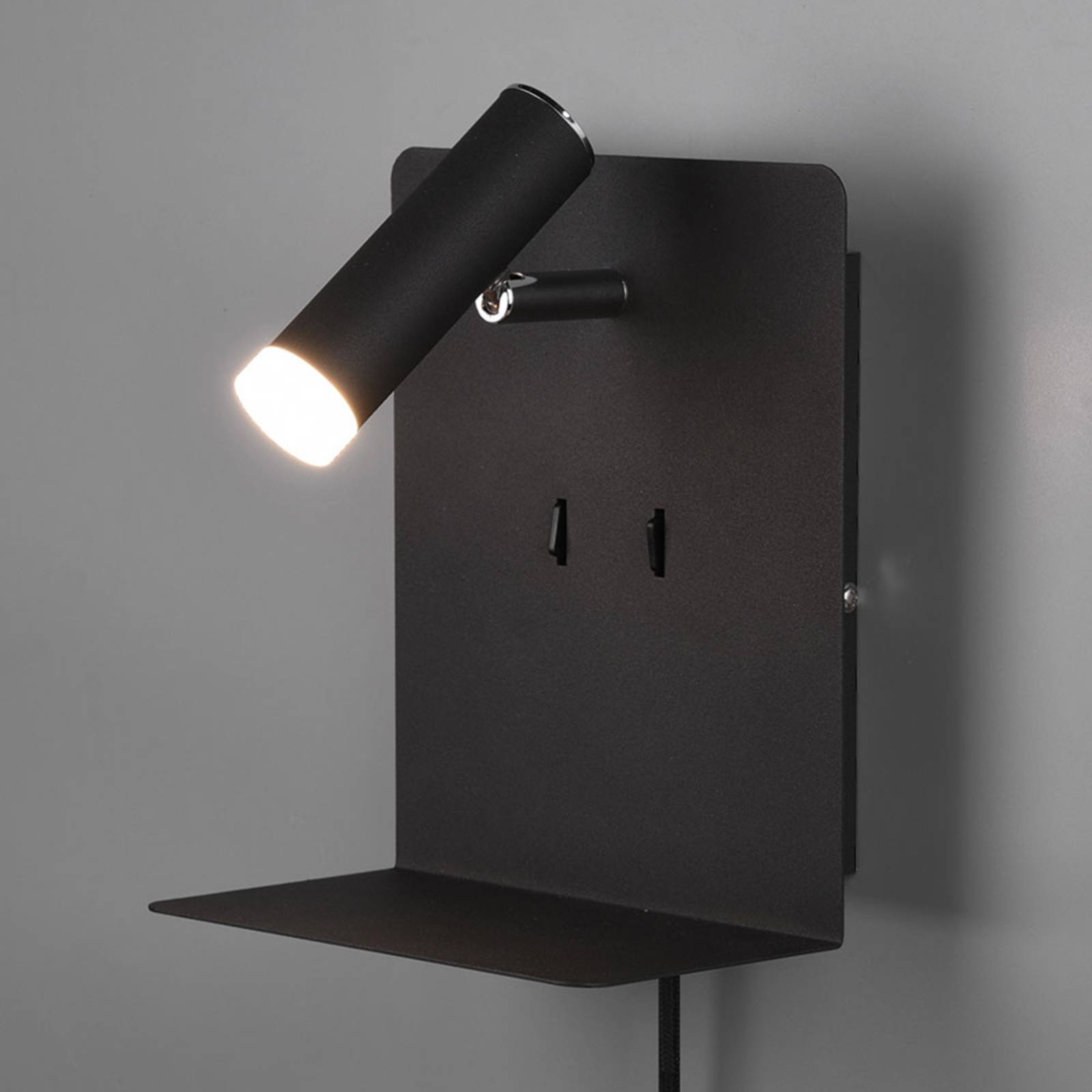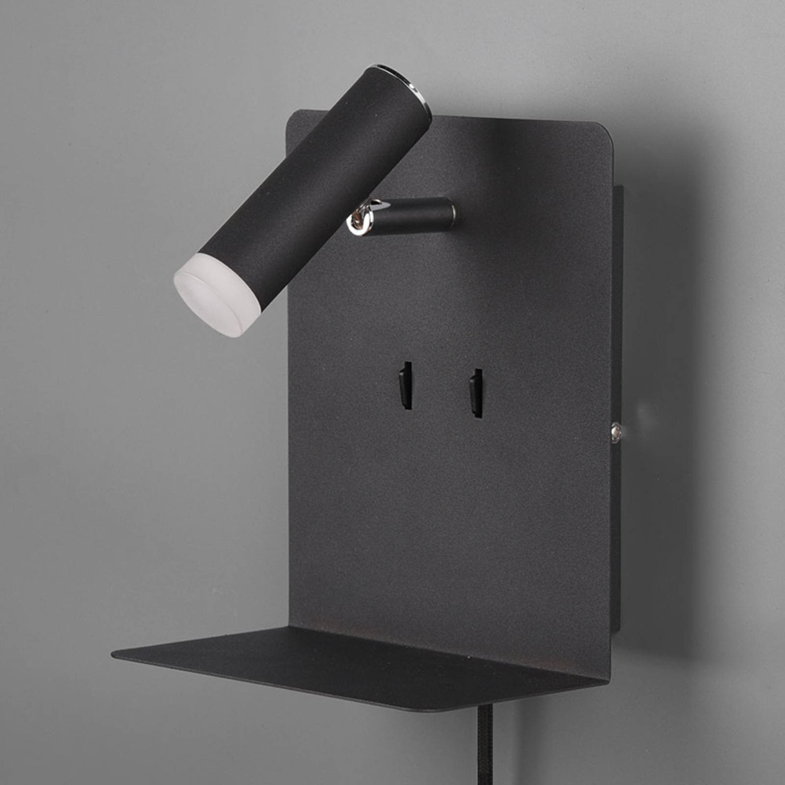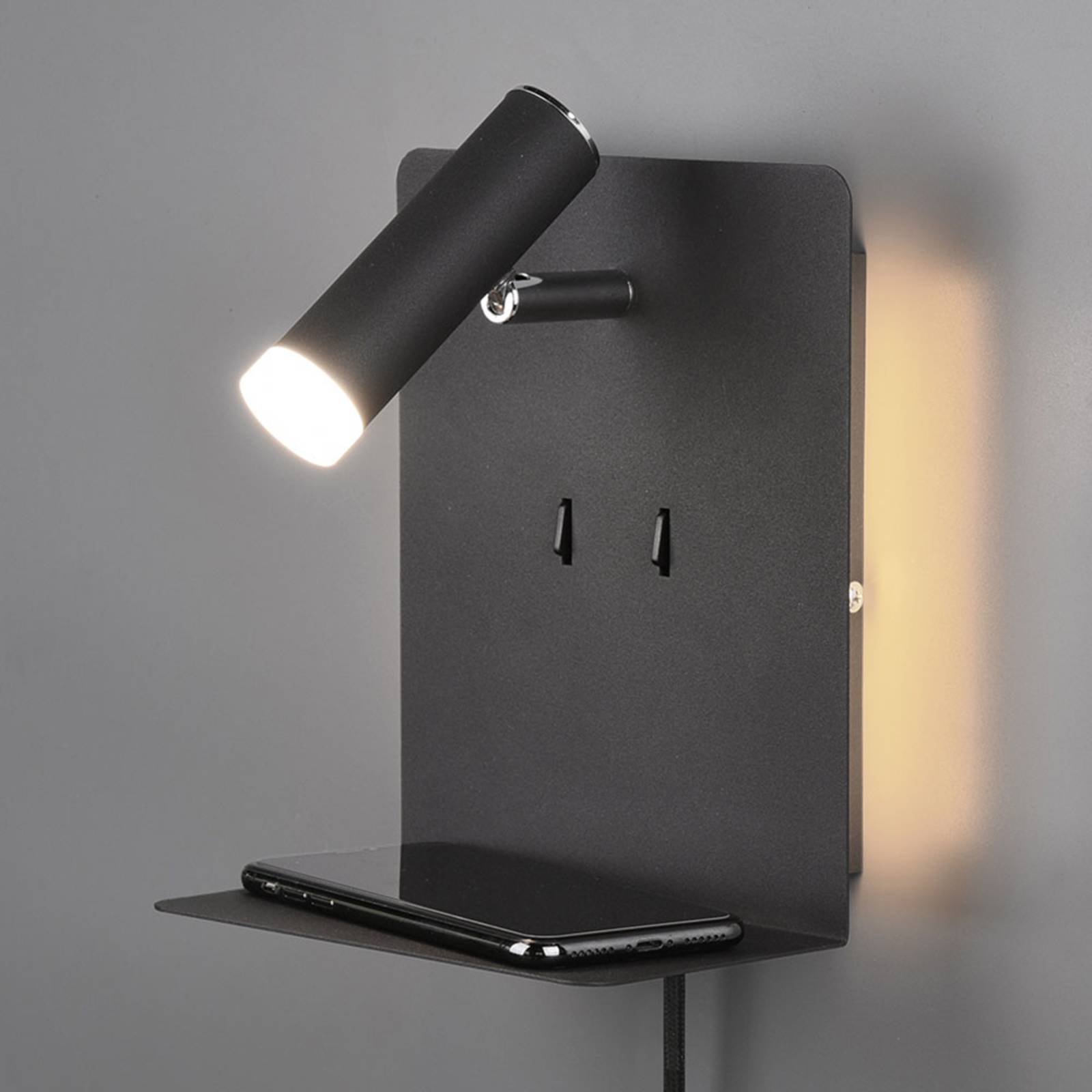 Applique a LED nero opaco Element con mensola L'applique a LED nero opaco Element offre molte funzioni pratiche ed è ideale per l'uso in camera da letto. Emette luce diretta da un LED incorporato nel faretto regolabile e luce indiretta da due LED sul retro dell'apparecchio, con la possibilità di commutare separatamente le due fonti luminose. L'apparecchio non è solo dotato di un ripiano, ma anche di un Porter che consente, ad esempio, di riporre e ricaricare contemporaneamente un telefono cellulare. L'applique a LED è dotata di Flex Connect. Può essere azionata da una presa di corrente utilizzando il cavo con spina, ma può anche essere montata direttamente su un attacco a parete. In questo caso, il cavo è staccabile.