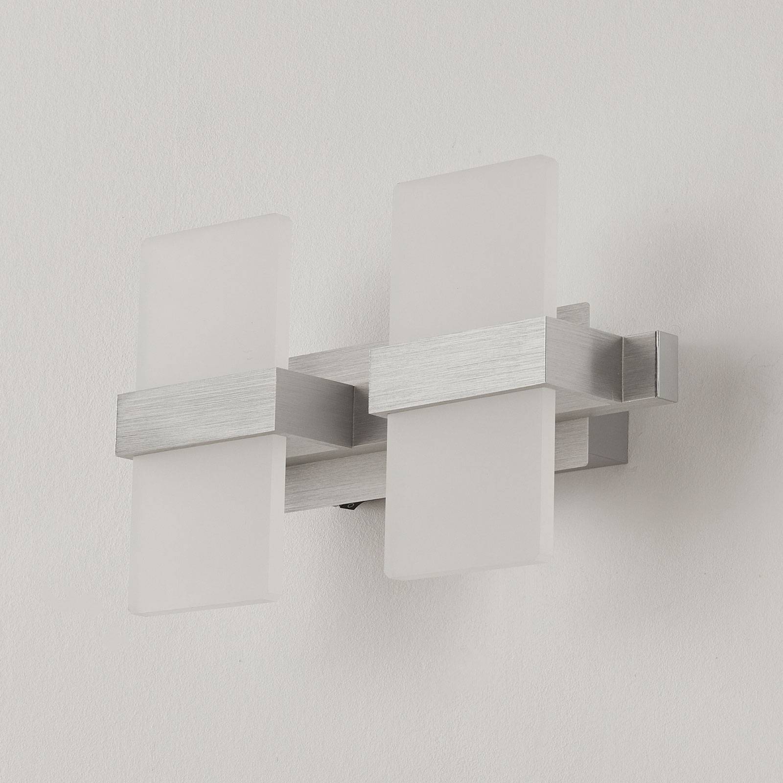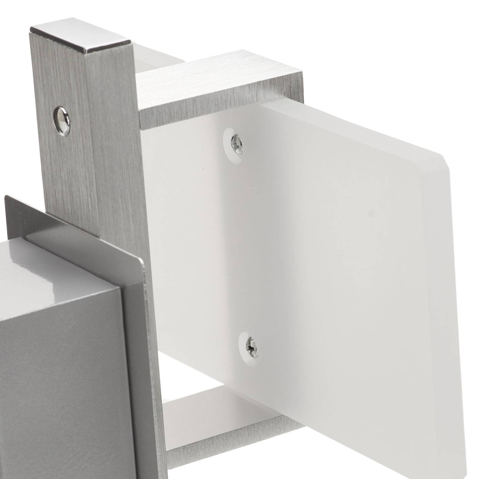 Lampada da parete a LED a due lampade Platon La lampada da parete a LED Platon è dotata di una staffa da parete in alluminio contenente due lastre acriliche che fungono da copertura per i LED integrati. I LED Osram a lunga durata, con una potenza di 4,5 watt ciascuno, forniscono una luce supplementare nell'ambiente che crea accenti suggestivi. La temperatura di colore è di 3.000 Kelvin, che la maggior parte delle persone trova molto gradevole.