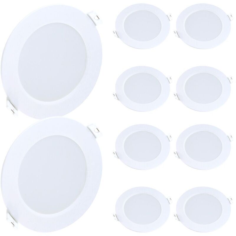 Set di 10 pannelli extra piatti da incasso a soffitto da 5W Lumen: 500 (sostituisce l'illuminazione da 40 W) Potenza: 5 W Angolo: 120° Classe 2 IP20 Diametro: 128 mm Diametro di foratura: 115 mm Spessore: 25 mm luce diffusa e gradevole ideale per un'illuminazione moderna e non aggressiva per gli occhi Driver LED integrato 2 anni di garanzia del produttore Norme CE, ROHS, EMC Progettazione dell'illuminazione di marca Potenza consumata: 5 Classe Energetique ERP2020: F Classe energetica: A+ Tutta la vita: 20.000 heures (donnée constructeur) Alimentazione: 220 Oscuratore: Non Potenza ripristinata: Env 40W Garanzia del produttore: 2 ans Materiale: Plastica IP: 20