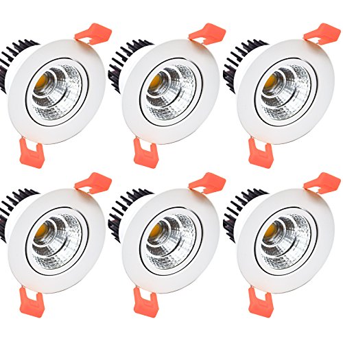 Kva Lighting Faretti da soffitto rotondi 8,6 cm COB LED Downlight, plafoniere da soffitto, 5 W fino a 50 W, angolo di luce regolabile, non dimmerabile,, 4500K Natürlich Kaltweiß (6er-Pack), fest 5.00W 240.00V