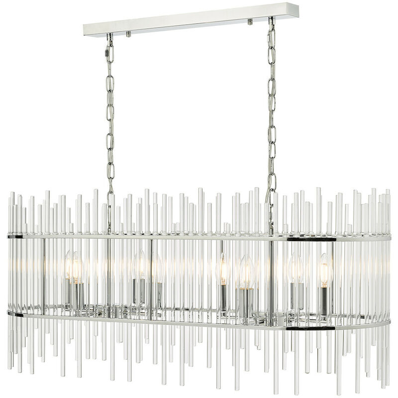 Dar Finola Plafoniera a sospensione a 8 barre luminose in vetro cromato lucido | Finitura: vetro, cromo lucido | Classificazione IP: IP20 | Altezza: 39cm | Altezza minima: 45 cm | Altezza massima: 188 cm | Larghezza: 90 cm | Profondità: 33cm | Tipo di lampada: E14 | N. di lampade: 8 | Lampadina inclusa: No | Peso: 7,7 kg | Potenza (massima): 40W