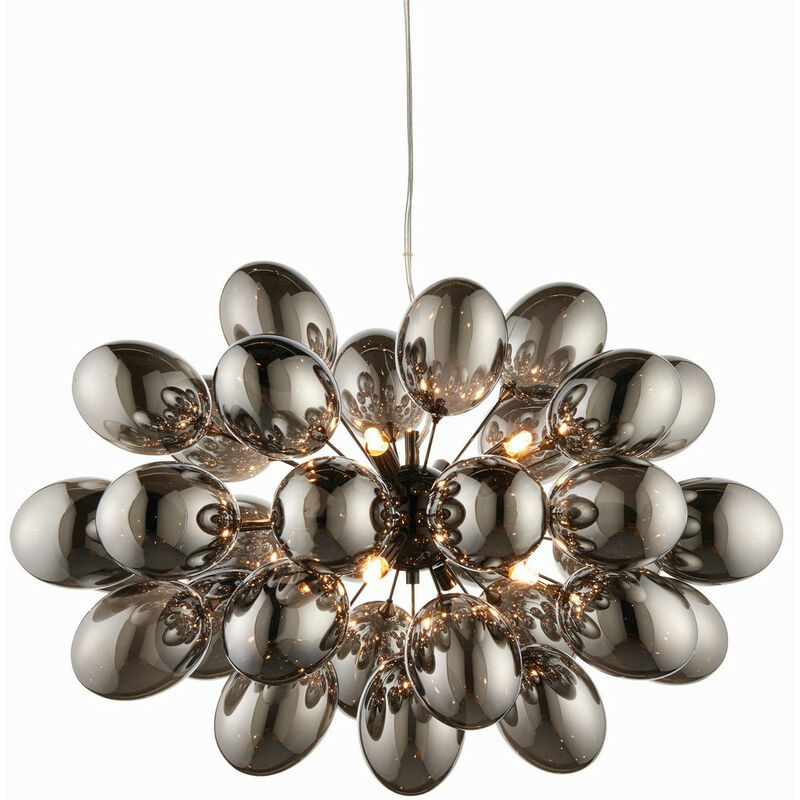 Endon Lighting Infinity - Pendente Effetto Cromato Nero e Vetro Fumé Effetto Specchio Colorato 8 Luci Dimmerabili IP20 - G9 | Finitura: piatto effetto cromo nero e vetro colorato effetto specchio fumé | Materiale: acciaio e vetro | Classificazione IP: IP20 | Altezza min (cm): 52 | Altezza massima (cm): 129 | Larghezza (cm): 72 | Profondità (cm): 50 | Tipo di lampada: G9 | Numero di lampade: 8 | Potenza: 28W | Lampadina inclusa: No | Dimmerabile | Kelvin (K): 2800 | Lumen (L): 370 | Peso (kg): 3,07