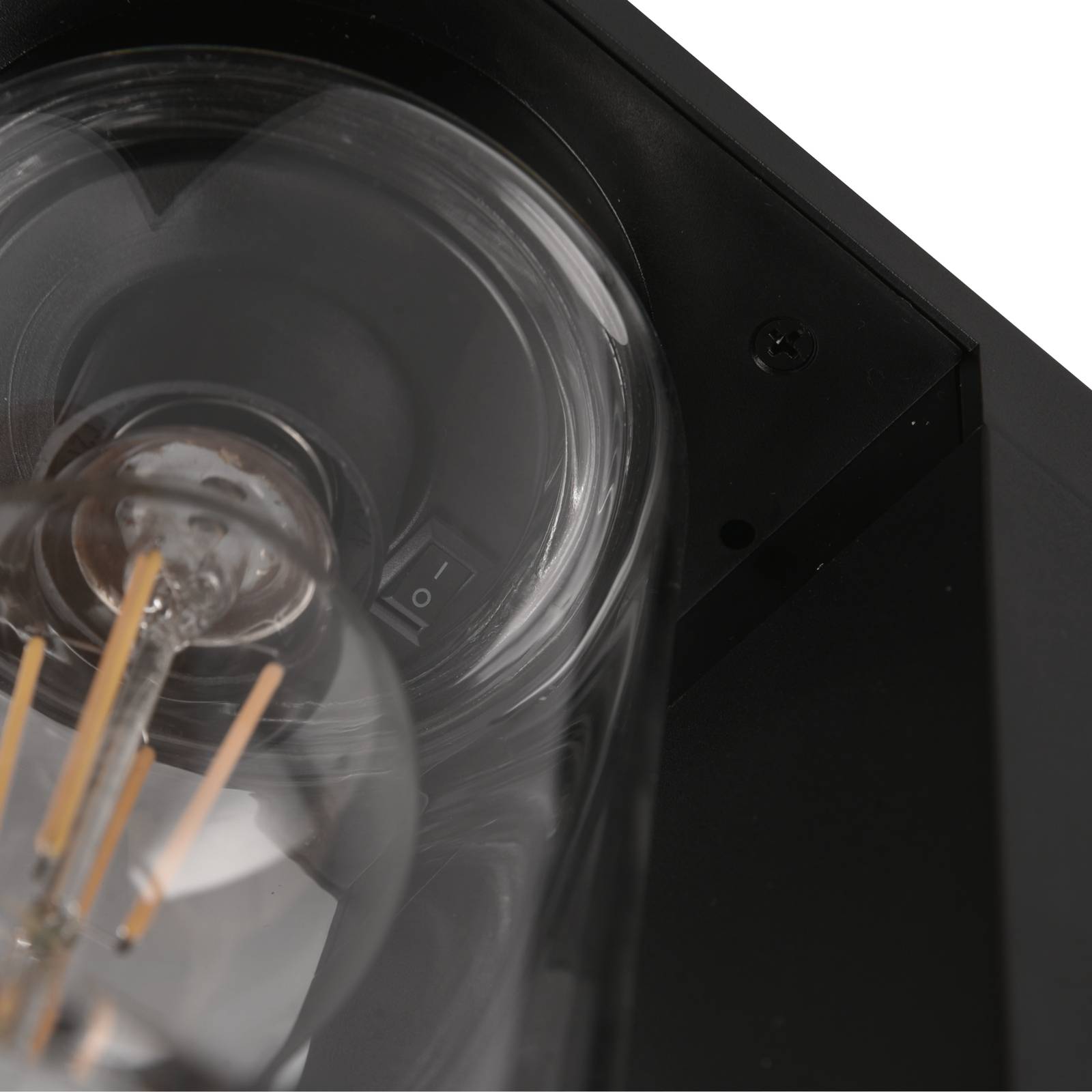Sensore crepuscolare commutabile integrato: Lampione Ardila in alluminio e vetro, IP44 Il paralume del lampione Ardila è in vetro trasparente. Si consiglia pertanto di utilizzare una lampadina a filamenti visibili di tipo E27. Le sorgenti luminose adatte sono disponibili separatamente tra gli accessori. L'alloggiamento è in alluminio pressofuso e verniciato in nero opaco. Ardila è protetta dagli spruzzi d'acqua e può quindi essere utilizzata all'esterno. Il sensore crepuscolare integrato può essere attivato e disattivato tramite un interruttore sull'alloggiamento. Caratteristiche tecniche: - Il sensore crepuscolare può essere attivato e disattivato tramite un interruttore sull'alloggiamento - Protetta contro gli spruzzi d'acqua (IP44)