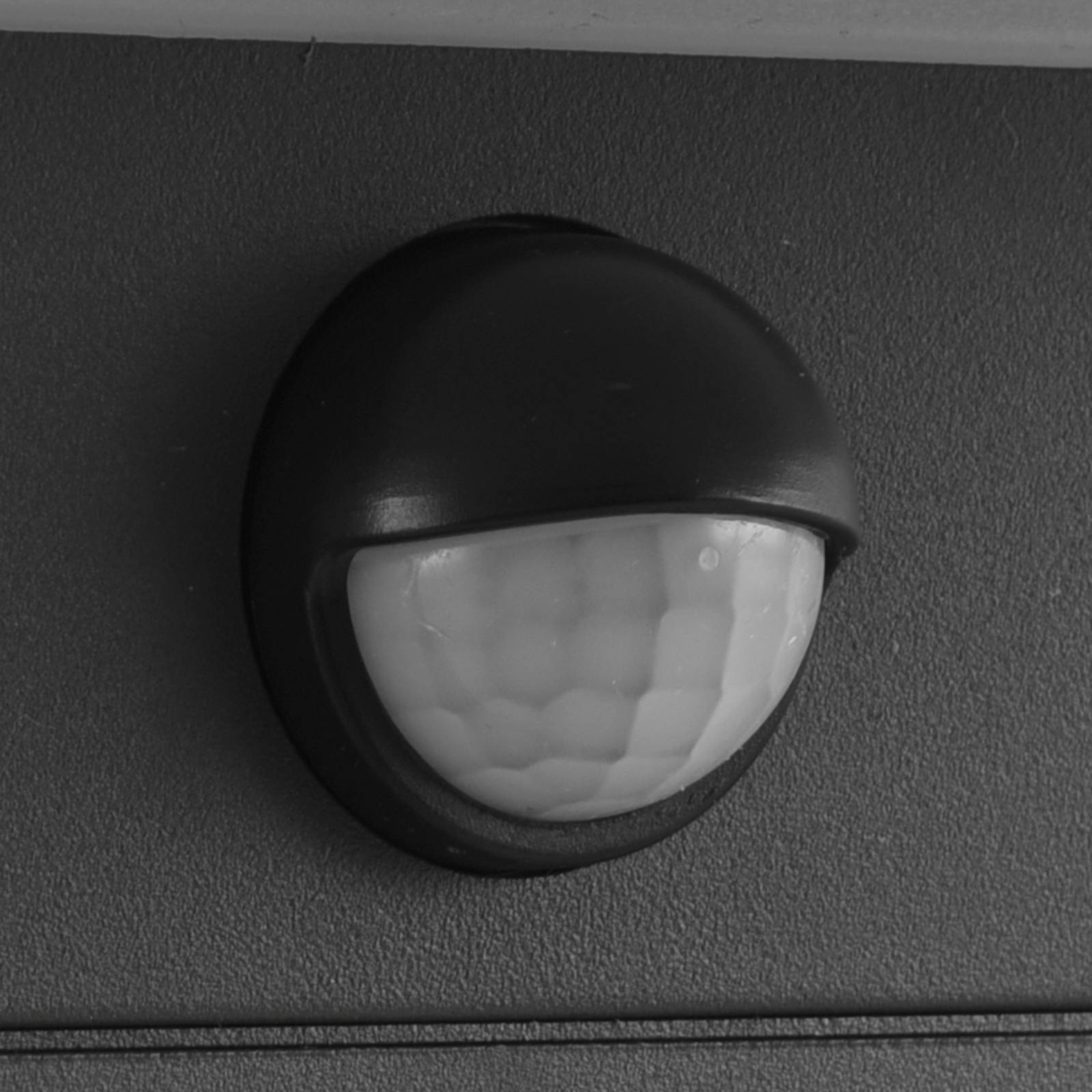 Sensore di movimento integrato: Lampione a LED Nestos, bianco caldo, IP54 Il robusto alloggiamento del lampione a LED Nestos è realizzato in alluminio pressofuso. È verniciato in antracite e protetto dagli spruzzi d'acqua. I LED integrati producono una luce bianca calda, che viene emessa con un basso abbagliamento attraverso il diffusore bianco opale. È incluso anche un sensore di movimento. Caratteristiche tecniche: - Raggio di rilevamento del sensore: 8 m - Angolo di rilevamento del sensore: 120° - Resistente agli spruzzi (IP54)