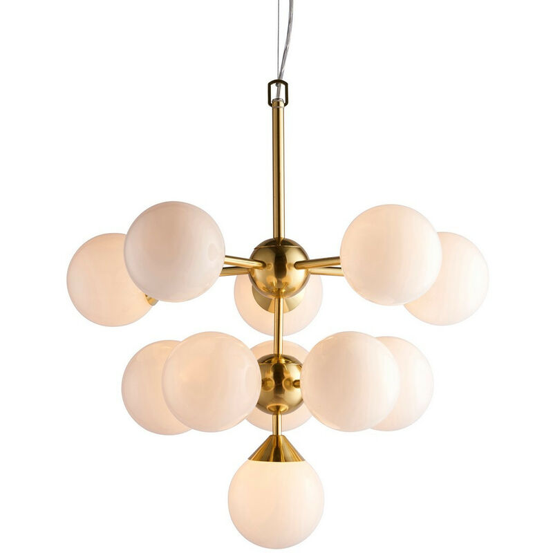 Endon Lighting Oscar - Pendente Effetto Oro Spazzolato Satinato Piatto e Vetro Bianco Lucido 11 Luce Dimmerabile IP20 - G9 | Finitura: piatto satinato effetto oro spazzolato e vetro bianco lucido | Materiale: acciaio e vetro | Classificazione IP: IP20 | Altezza min (cm): 52 | Altezza massima (cm): 172 | Diametro (cm): 55.8 | Tipo di lampada: G9 | Numero di lampade: 11 | Potenza: 18W | Lampadina inclusa: Sì | Dimmerabile | Peso (kg): 3,68