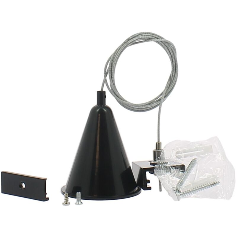Kit di sospensione con guida in filo nero - 3 fasi Questo kit di sospensione consente di installare 4 binari Wire al soffitto, ogni kit include 1,40 metri di cavo. Un gancio per il montaggio a soffitto. Grazie a questi kit è possibile mantenere i binari sospesi regolandone l'altezza desiderata. Garanzia del produttore: 3 ans uso: Interni IP: 20