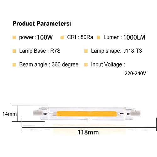 Risparmio energetico: lampadina a LED da 118mm R7s da 10W Sostituisci la lampadina alogena R7s J118 da 100 W, riduce il consumo energetico di oltre l' 85% e ha un'eccellente conduttività termica, che può prolungare la durata della vita utile.