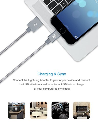 Cavo Lightning su USB - [Certificato Apple MFi] OPSO in Nylon 1m di Ricarica e Sincronizzazione Dati per iPhone 7 Plus 6S Plus 6 Plus SE 5S 5C 5, iPad 2 3 4 mini, iPad Pro Air 2, iPod -Grigio