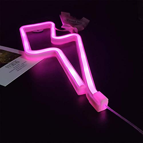 LED Lightning Bolt Neon Light Pink Lightning Wall Decor Light Luci notturne alimentate a batteria/USB Insegne al neon LED Strisce luminose al neon per decorazioni per feste di compleanno (rosa)