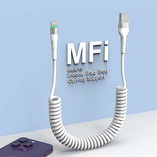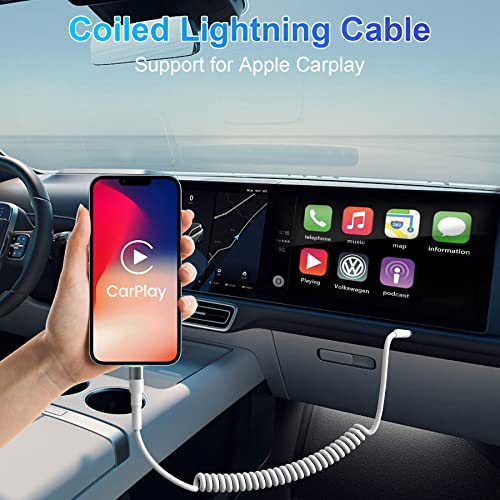 Cavo Lightning a Spirale - Cavo USB a Lightning iPhone utilizza un design retrattile, lungo 1,5 piedi in forma naturale, può essere allungato fino a 4 piedi, sufficiente per l'uso in macchina. Cavo Apple Carplay arrotolato portatile e non aggrovigliato, mantieni la tua auto organizzata e saluta il disordine dei cavi dati e le seccature aggrovigliate