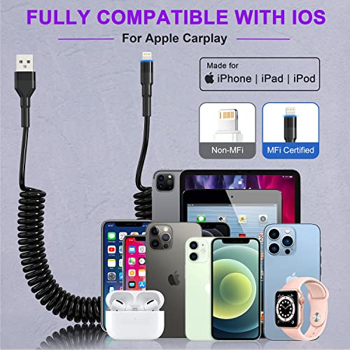 Cavo di ricarica per iPhone per auto: Questo cavo lightning a spirale è un'ottima soluzione per ricaricare il telefono in auto e supporta Apple CarPlay. Caricabatterie per iPhone retrattile con design a molla, portatile e non aggrovigliato. Inoltre, il cavo Apple CarPlay consente di risparmiare spazio in auto e di dire addio al fastidio del cavo di ricarica.