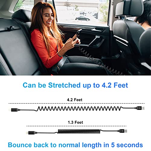 Cavo Lightning a spirale, confezione da 2 cavi di ricarica per iPhone per auto, cavo a spirale Apple Carplay [certificato Apple Mfi] corto cavo di ricarica retrattile per iPhone/iPad/iPod