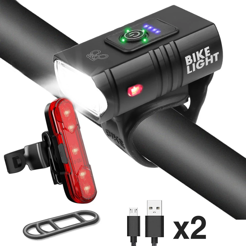 T6 LED Bike Lights Set USB Rechargeable Bicycle Lights Front Back Headlight IPX4 Waterproof 6 Lighting Modes Cycling Equipment