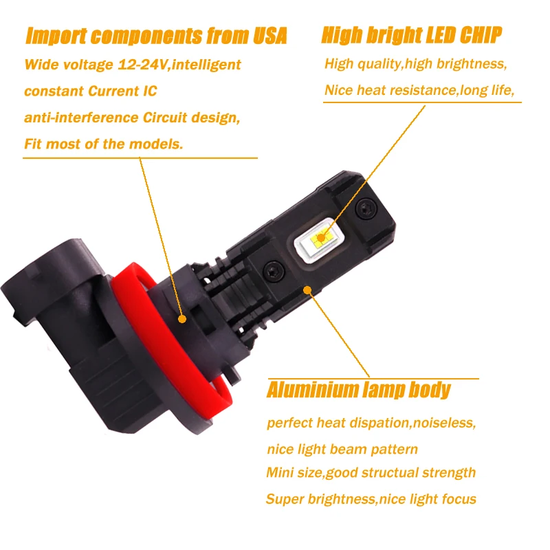2Pcs 9006 HB4 LED Fog Lights H11 H8 H1 H7 LED Bulb;