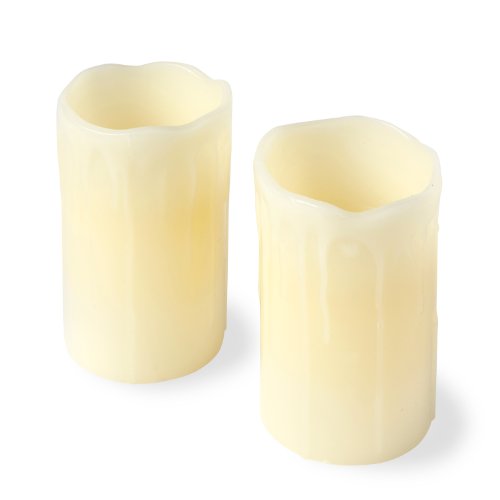 Lights4fun - Set di 2 candele a LED in vera cera, con timer, funzionamento a batteria, 6
