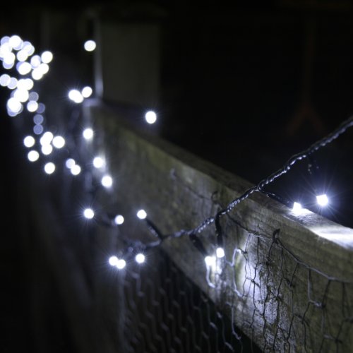 Lights4fun - Catena di Luci ad Energia Solare con 100 LED Bianco Freddo su Cavo Verde per Giardino ed Esterni