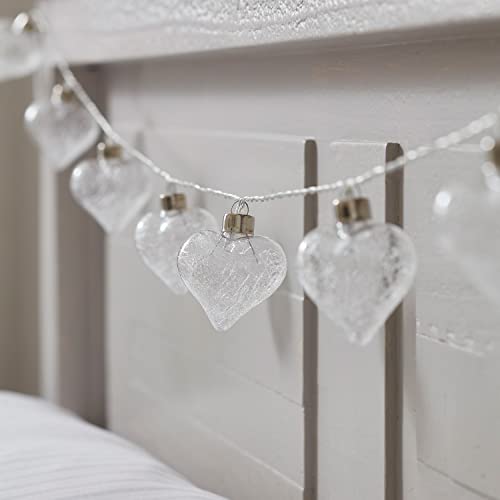 Lights4fun Catena Luminosa di 10 Cuori in Vetro con LED Bianchi Caldi a Pile per Arredo Interni di San Valentino