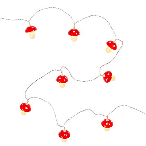 Questa catena luminosa di 20 funghi solari con LED di luce bianca calda misura 3,8 metri con un cavo di alimentazione di 3 metri