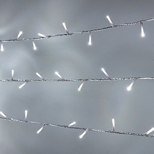 Lights4fun - Catena di Luci Prolungabile a Pile con 100 LED Bianco Freddo su 10m di Cavo Trasparente per Interni ed Esterni