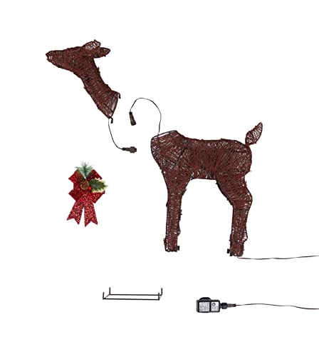 Una pratica funzione di programmatore di 6 ore e' inclusa con questo duo di cerva e cerbiatto di Natale in filo di cotone marrone per un'illuminazione automatica ogni sera