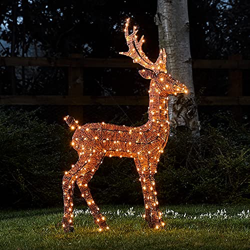 Lights4fun Decorazione Cervo di Natale in Filo di Cotone Marrone con 240 LED Bianchi Caldi per Arredo Esterni